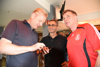 7.06.2018 Frankfurt am Main, Commerzbankarena Public viewing WM 2018 Deutschland gegen Mexiko Sportdezernent der Stadt Frankfurt Markus Frank mit Mitarbeitern der Stadion GmbH *** Foto: Peter Hartenelser