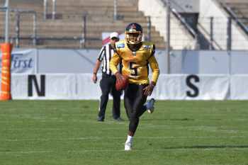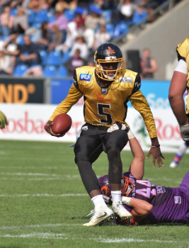 03.09.2017 xfhx Frankfurt am Main, GFL, Amercan Football Samsung Frankfurt Universe gegen Munich Cowboys QB #5 Benjamin Wilkerson (Munich Cowboys) **** Foto: Peter Hartenfelser