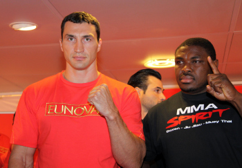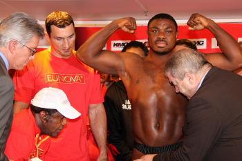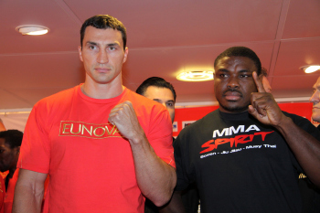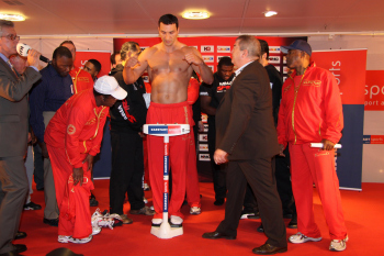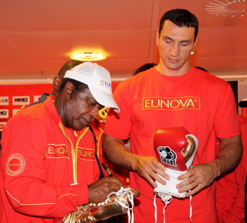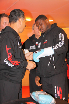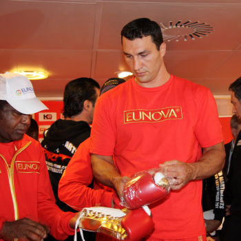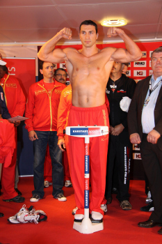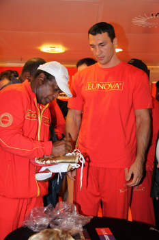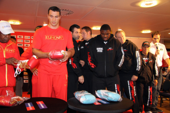 10.09.2010, Wladimir Klitschko morgen gegen den "Nigerian Nightmare" Samuel Peter. Wladimir Klitschko sucht sich die roten Boxhandschuhe aus