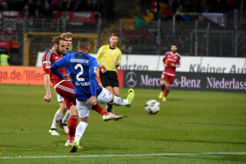 Torschuss zum Tor zum 0:1 f?r Ingolstadt vo Moritz Hartmann (Ingolstadt) ?nis Ben-Hatira (SV98) hat keine Chance