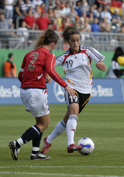 30.08.2007, Frauen-L?nderspiel Deutschland vs Norwegen, Marit F. Christensen vs Fatmire Bajramaj