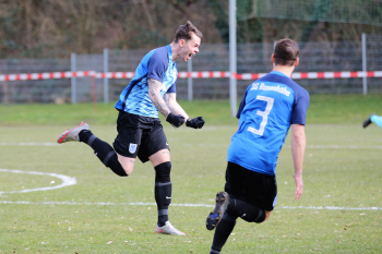 05.03.2022 xmgoodx Offenbach am Main Fussball Amateure Saison 2021/2022 - Gruppenliga VfB Offenbach – SG Rosenhöhe Torjubel nach dem Tor zum 0:1 durch den Torschützen Robin Weber (9, Rosenhöhe) ***** Foto: A2Bildagentur Hartenfelser