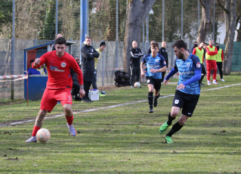 05.03.2022 xmgoodx Offenbach am Main Fussball Amateure Saison 2021/2022 - Gruppenliga VfB Offenbach – SG Rosenhöhe GABRIEL MARTORELLI (11, VFB) gegen YASSINE DAHRI (17, Rosenhöhe) ***** Foto: A2Bildagentur Hartenfelser