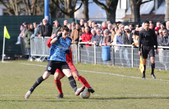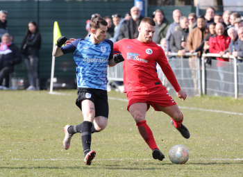 05.03.2022 xmgoodx Offenbach am Main Fussball Amateure Saison 2021/2022 - Gruppenliga VfB Offenbach – SG Rosenhöhe Eric Kraus (23, Rosenhöhe) gegen Olkay Ünal (31, VFB) ***** Foto: A2Bildagentur Hartenfelser