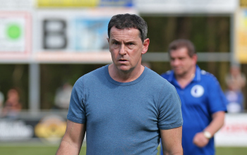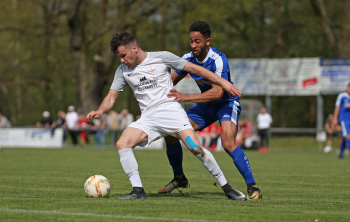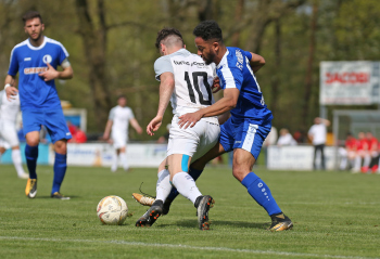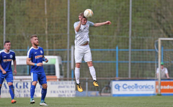 15.04.2018, xxx, Fussball, Urberach, Traminer Strasse, Verbandsliga Gruppe Sued, FC Viktoria Urberach - TS Ober Roden v.l. Feta Suljic (TS Ober Roden), Ferhat Gecili (FC Viktoria Urberach), Sinisa Alempic (FC Viktoria Urberach), Ole Schickedanz Torwart (FC Viktoria Urberach),