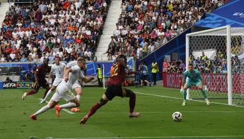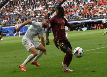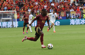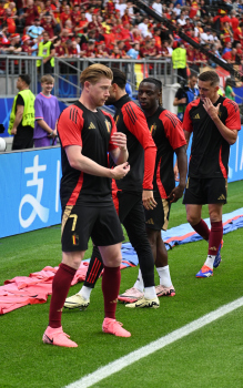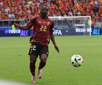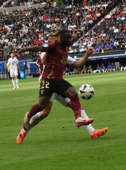 Jeremy Doku (Belgien, 22), Romelu Lukaku (Belgien BEL, 10) gegen Milan Skriniar (Slowakei, 14),