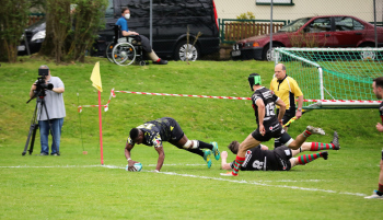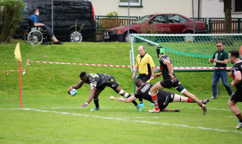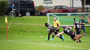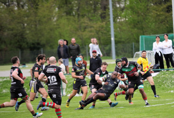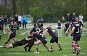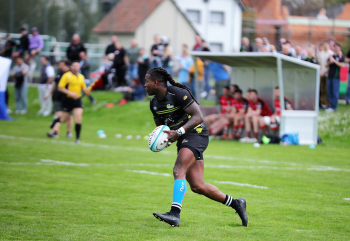 22.04.2023 Offenbach am Main Rugby Bundesliga Süd/West Offenbacher SCR (OSC Rosenhöhe) – RK Heusenstamm Lutho Kote (Offenbacher SCR) mit dem Ball setzt sich durch ***** Foto: A2Bildagentur Hartenfelser