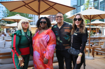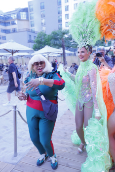 12.05.2025 Frankfurt am Main Frankfurter Gibson Beach Club - Strandfeeling mitten im Bankenviertel Mit dabei Kult-Duo The Weather Girls, Sänger Jimmie Wilson, Designerin Galia Brener-Rexroth ********* Foto: Peter Hartenfelser