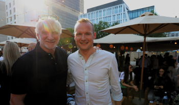 12.05.2025 Frankfurt am Main Frankfurter Gibson Beach Club - Strandfeeling mitten im Bankenviertel Mit dabei Madeleine Ball Unternehmer Geschäftsführerin bei Ballcom Digital Public Relations hier mit Ardi Goldman ********* Foto: Peter Hartenfelser