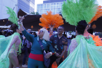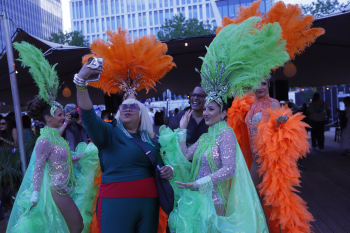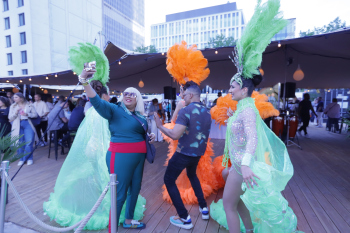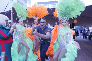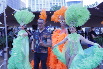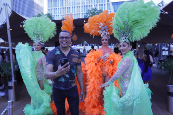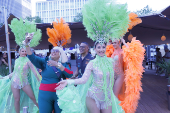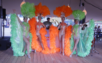 12.05.2025 Frankfurt am Main Frankfurter Gibson Beach Club - Strandfeeling mitten im Bankenviertel fantastische Tänzerinen erfreuen die Gäste ********* Foto: Peter Hartenfelser