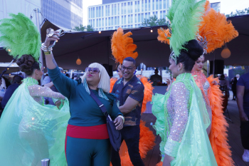 12.05.2025 Frankfurt am Main Frankfurter Gibson Beach Club - Strandfeeling mitten im Bankenviertel fantastische Tänzerinen erfreuen die Gäste unter anderem die Kultsängerin von The Weather Girls ********* Foto: Peter Hartenfelser