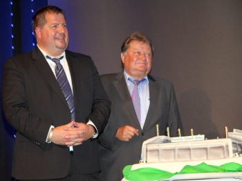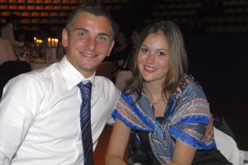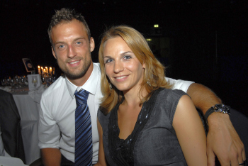 20.08.2010, 2. Bundesliga, Saison 2010/2011, FSV Frankfurt feiert sein 111j?hriges Vereins-Jubil?um in der Eisporthalle, Pr?sident Harald Strutz und seine Lebensgef?hrtin Christine Krumhoff strahlen um die Wetten, den sie werden bald heiraten