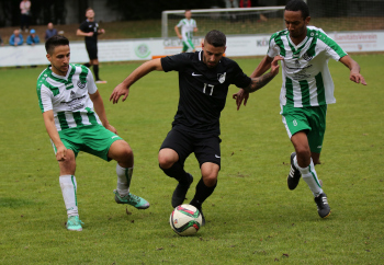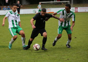 Mehmet Baris Bayraktaroglu und Aron (TSG Neu-Isenburg) gegen Sahin Erman Tasgin (TSG 1909 Mainflingen)