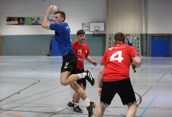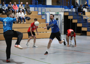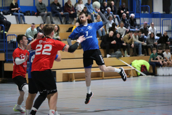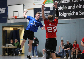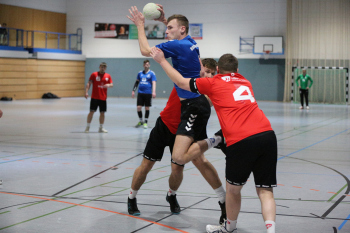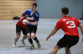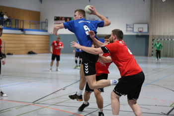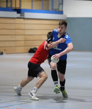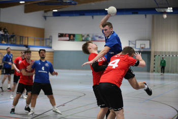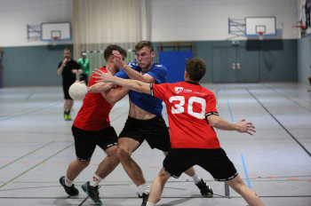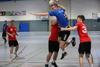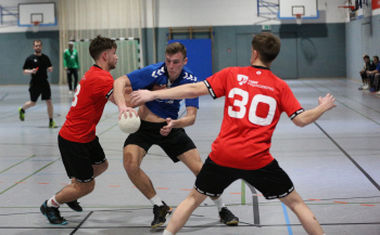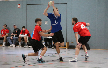 Kampe, Lars (HSG Dietzenbach) gegen Sagorski, Niklas und Valina Allo, Yannick (HSG Preagberg)
