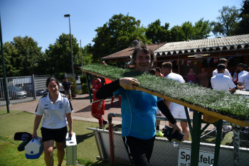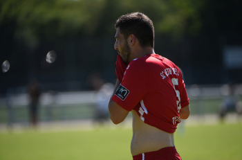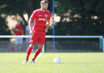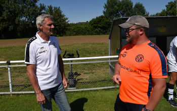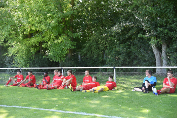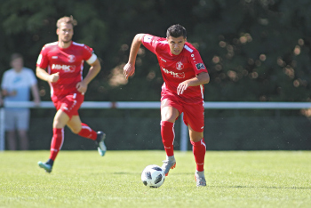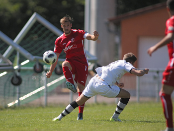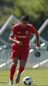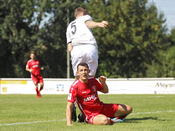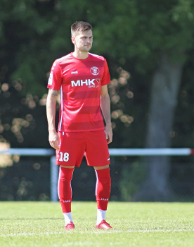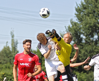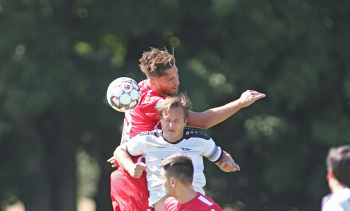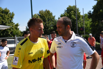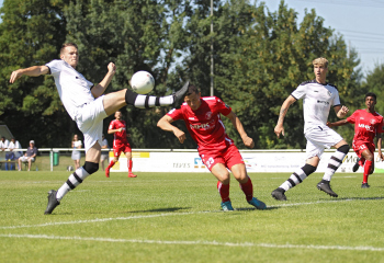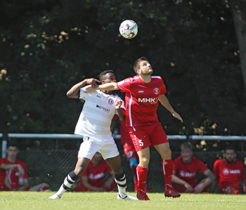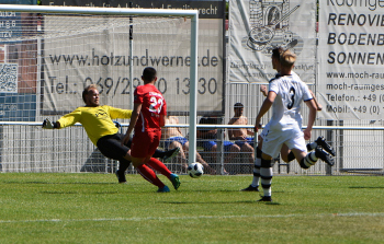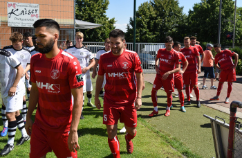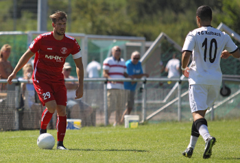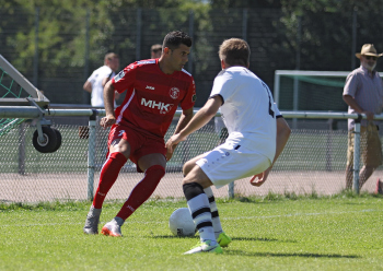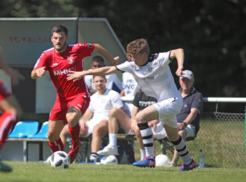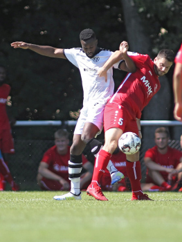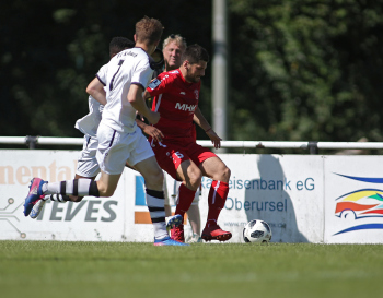 30.06.2018, xxx, Fussball, Regionalliga Suedwest 2018/2019, Testspiel FC Kalbach - SC Hessen Dreieich, vl.:Joshua Mensah (FC Kalbach), Alexandros Theodosiadis (SC Hessen Dreieich), Abassin Alikhil (SC Hessen Dreieich), Ricardo Harrabi (FC Kalbach),