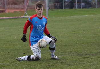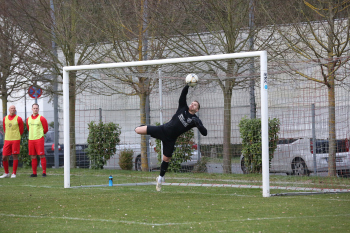 08.03.2020, xmgoodx Obertshausen KOL Offenbach Teutonia Hausen - TSG Neu-Isenburg Torwart Sebatian Walter (Teutonia Hausen) hält Freistoss ****** Foto: Peter Hartenfelser