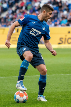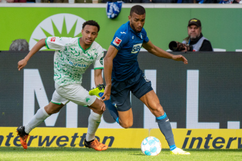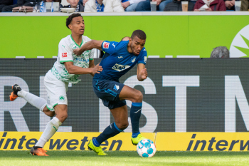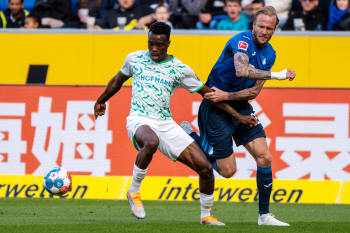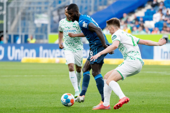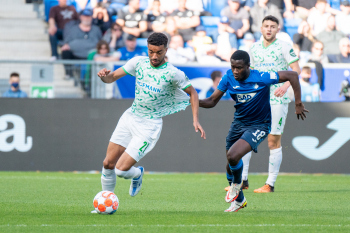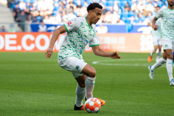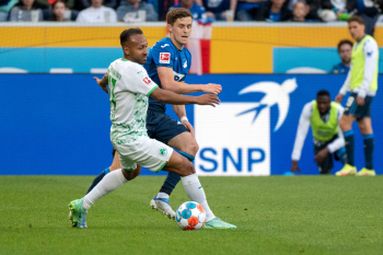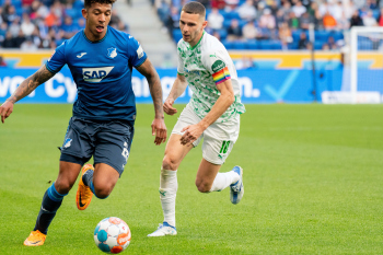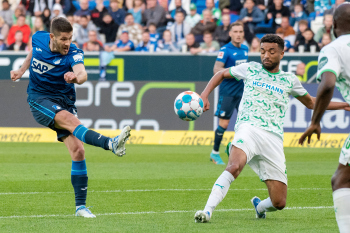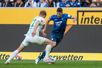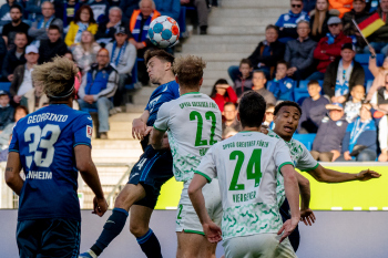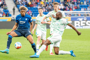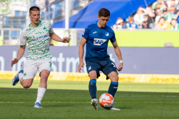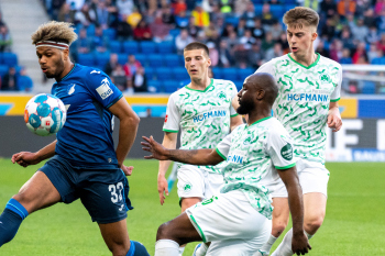 Georginio Rutter, Christoph Baumgartner (TSG 1899 Hoffenheim), Sebastian Griesbeck, Nick Viergever und Timothy Tillmann (SpVgg Greuther Fuerth).