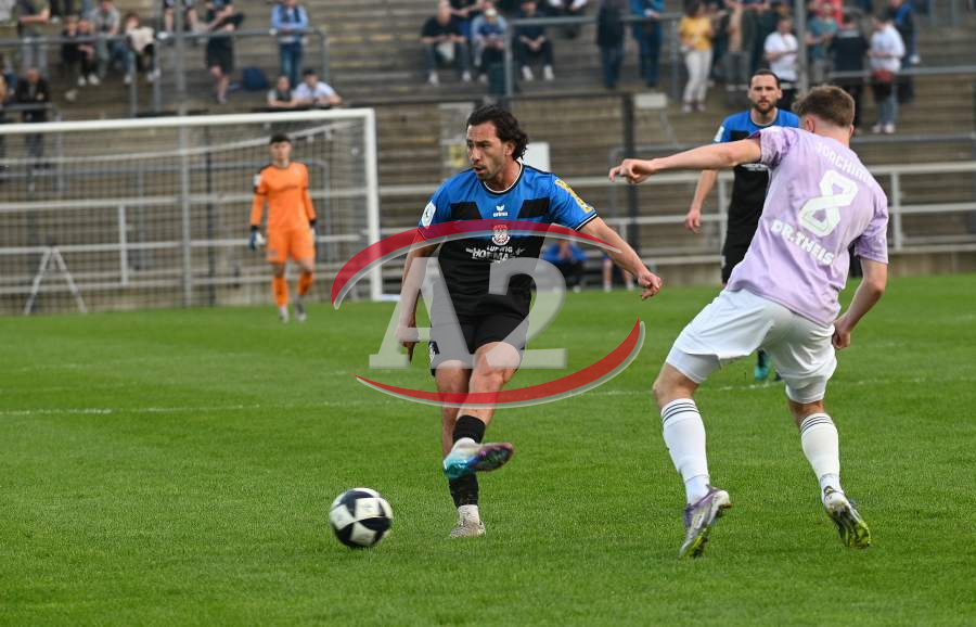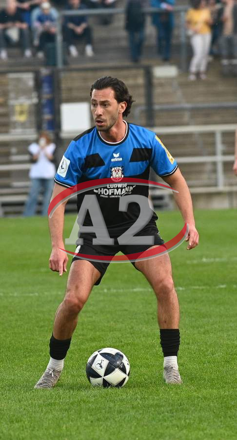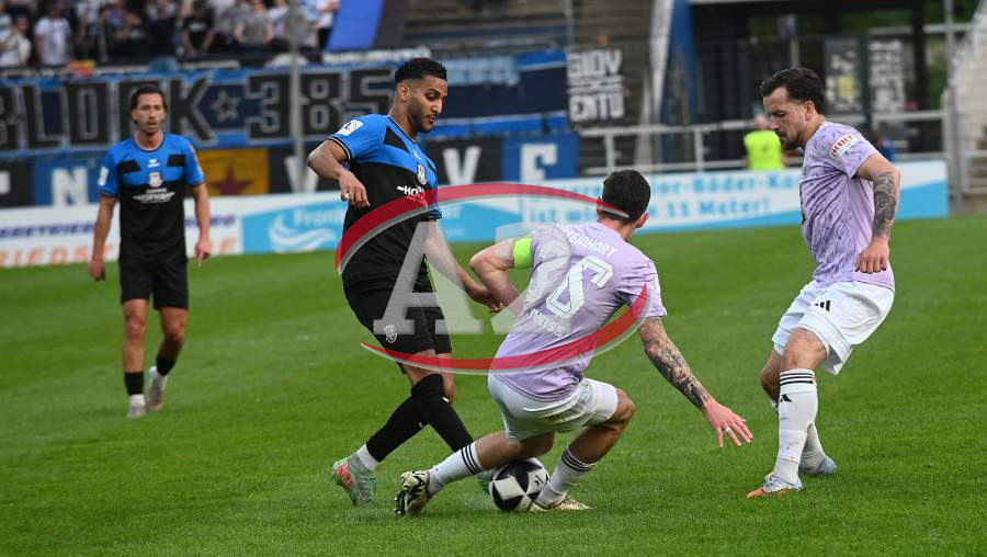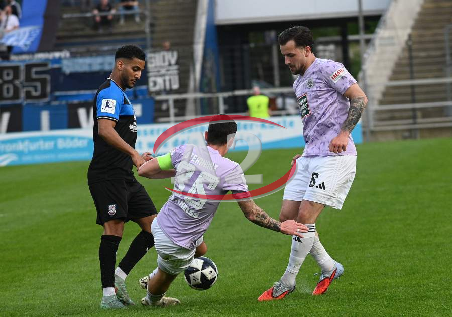 Giorgio Del Vecchio (8, FSV Frankfurt) und Birkan Celik (7, FSV Frankfurt) gegen Frederic Rolf Baum (FC 08 Homburg)