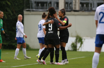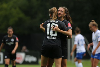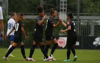 Torjubel Eintracht Frankfurt, Jubel, Freude, Emotionen, Goal celebration, Shekiera Martinez, Laura Feiersinger, Mai Hirata (SGE)