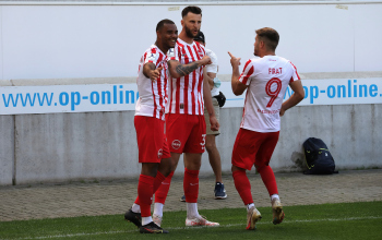 Torwart Stefan Flauder (28, OFC), Denis Huseinbašić (20, OFC), Moody Chana (4, OFC)