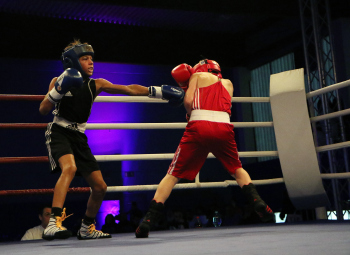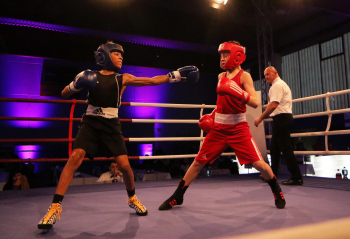 18.02.2017 Frakfurt am Main, Niddahalle Boxen, CSC-Frankfurt e.V., 1. Horst-Gauss-Cup Samet Tokay (PSV Frankfurt, rot) gegen Janaschko (Old School Boxing) ********** Foto: Peter Hartenfelser