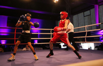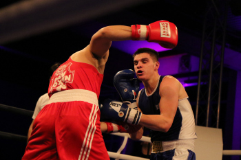 18.02.2017 Frakfurt am Main, Niddahalle Boxen, CSC-Frankfurt e.V., 1. Horst-Gauss-Cup Milan Cumic (GBG Wiesbaden, rot) gegen Franklyn Dwomoh ( 1. Box-Club (BC) Marburg ) ********** Foto: Peter Hartenfelser