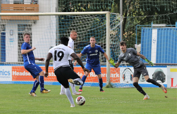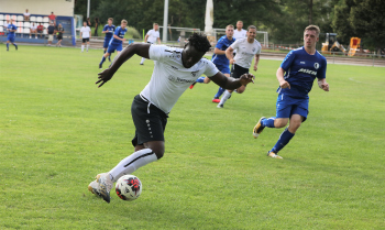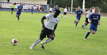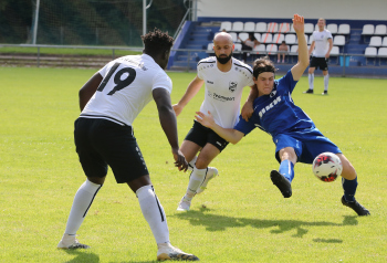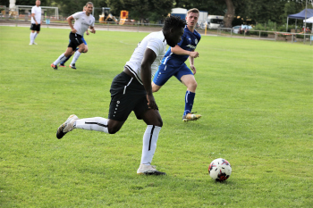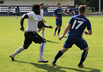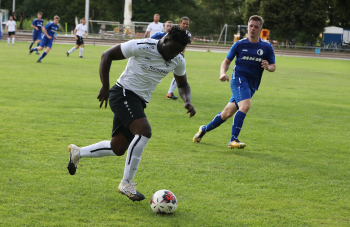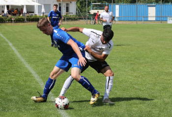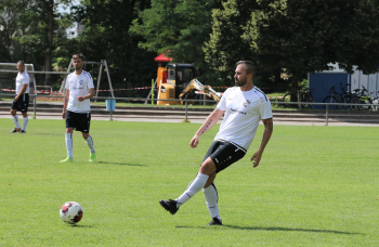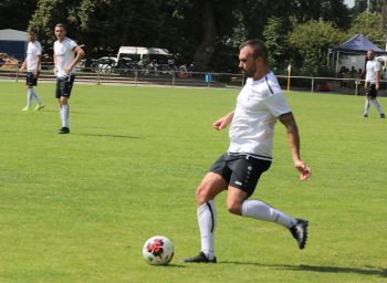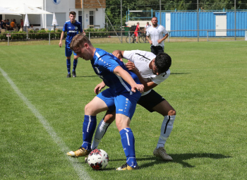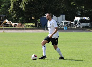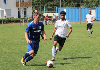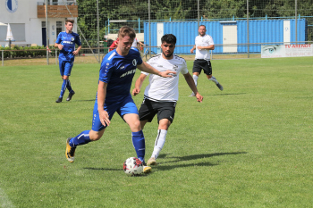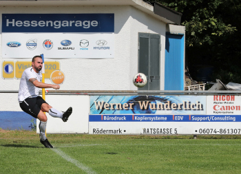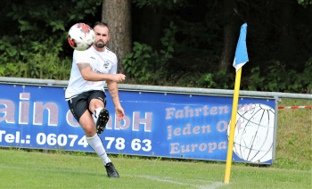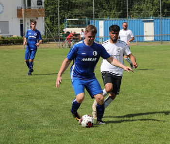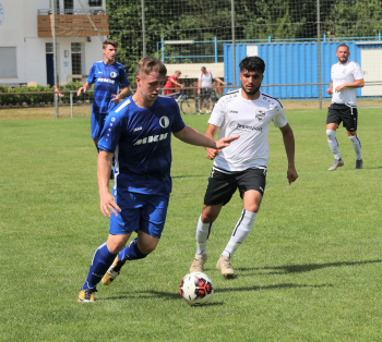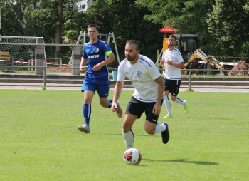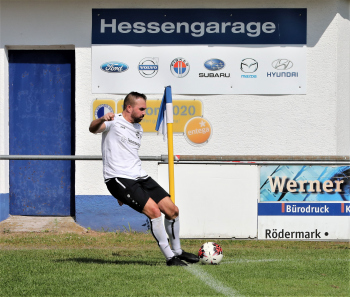 Ex-Fusballprofi Christopher Reinhard läuft jezt für DJK SV Sparta Bürgel auf - hier gegen Tim Wehner (Urberach)