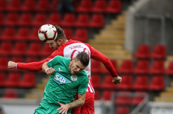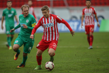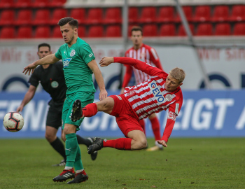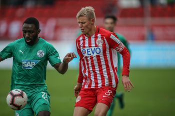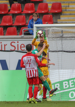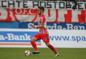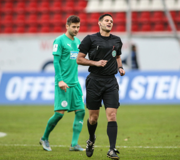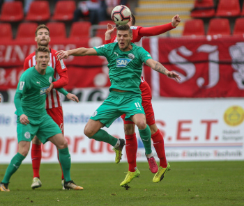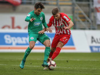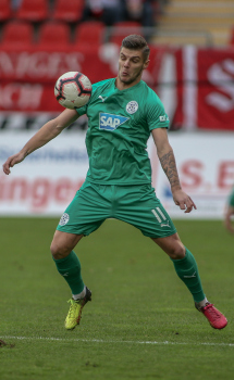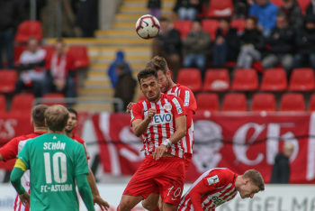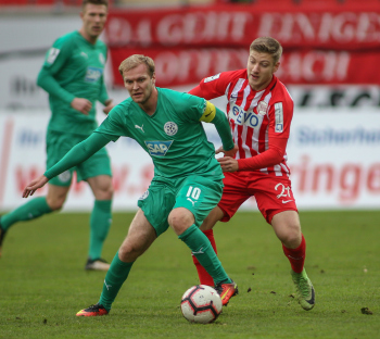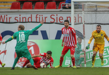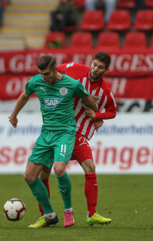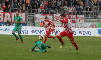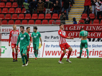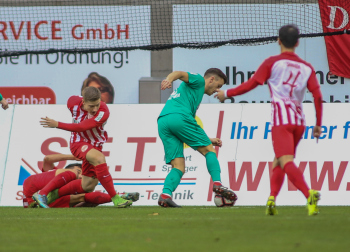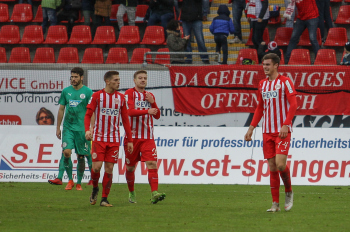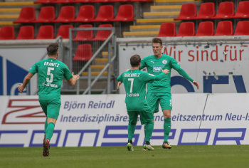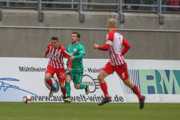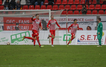 01.12.2018, xxx, Offenbach, Sparda-Bank-Hessen-Stadion, Fussball, Herren, Regionalliga Suedwest Saison 2018/2019, Kickers Offenbach OFC gegen Astoria Walldorf; Tor zum 0:1 in der 22. Minute durch Nicolai Gross (FC Astoria Walldorf), Freude bei Nicolai Gross (FC Astoria Walldorf), mit dem Gesicht zur Kamera, Tim Fahrenholz (FC Astoria Walldorf), und Simon Kranitz (FC Astoria Walldorf),