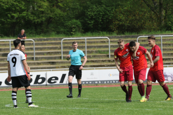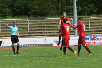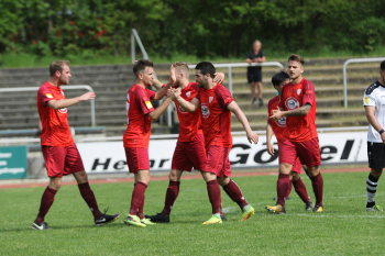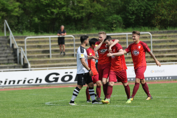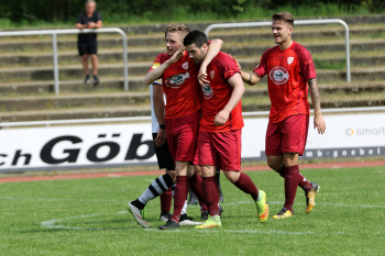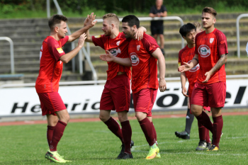Torjubel bei Torschützen Johannes Günther (11, Spvgg. 03 Neu-Isenburg ), mit Marc Zuege (18, Spvgg 03 Neu-Isenburg), Julian Cichutek (13, Spvgg. 03 Neu-Isenburg)