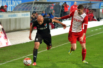 04.03.3016 xfHx Offenbach, Sparda-Bank-Hessen-Stadion , Regionalliga S?d, Offenbacher Kickers (OFC) OFC gegen TSV Steinbach Trainer Thomas Brdaric (TSV Steinbach) gegen Sargis Adamyan (TSV Steinbach ******* Foto: Peter Hartenfelser
