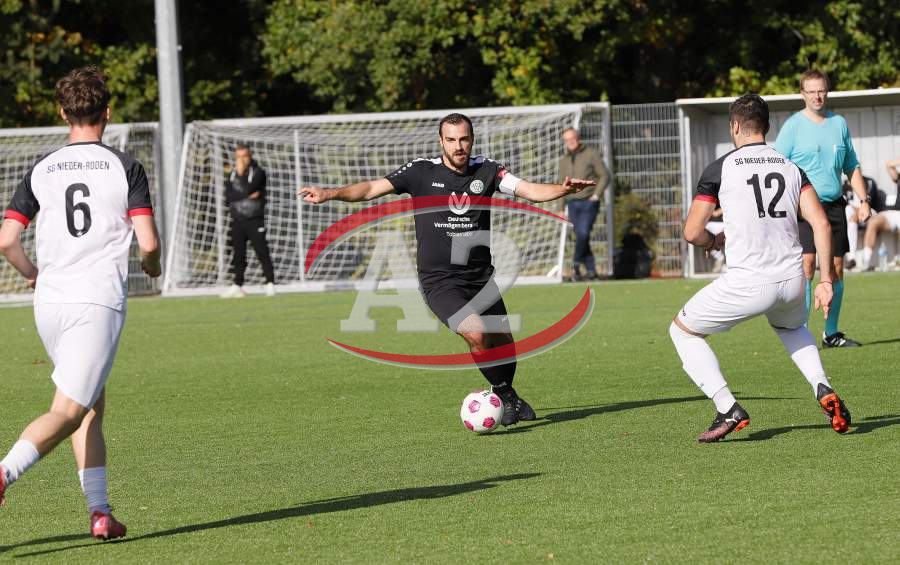 AYBERK KARASU (19, TSG Neu-Isenburg) gegen Tim Uhlmann und Antonio Tanchev EAdis Pasic (8, Spvgg. 03 Neu-Isenburg)der-Roden)