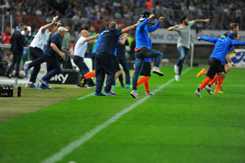 Deutschland, Karlsruhe: Fussball, 2. Liga: Karlsruher SC vs. SV Darmstadt 98 am 11.05.2015, Wildpark Stadion .