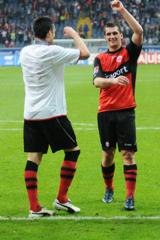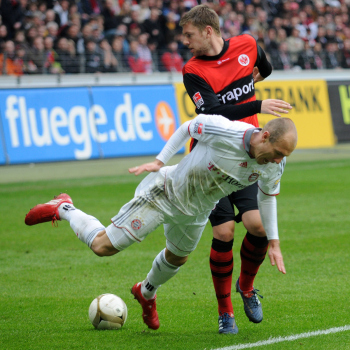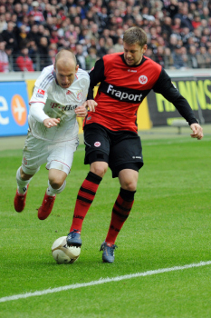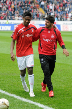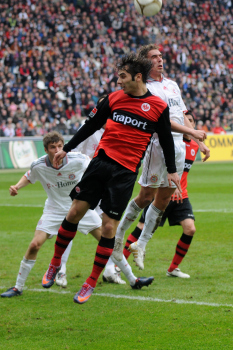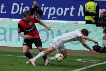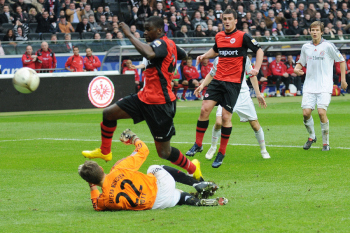 20.03.2010, 1. Bundesliga, 27. Spieltag: 1.Bundesliga, Eintracht Frankfurt - FC Bayern, Torsch?tze Juvhel Tsoumou (Eintracht) vs Torwart J?rg Butt (Bayern), Martin Fenin (Eintracht)