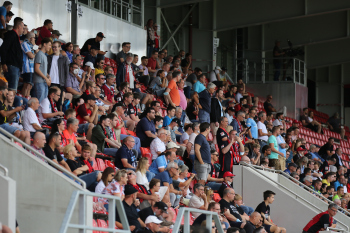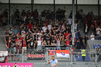 Fans von Wehen Wiesbaden auf der Tribuene, Zuschauer, Schal, Stimmung, Fanblock, Symbolbild