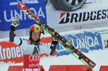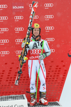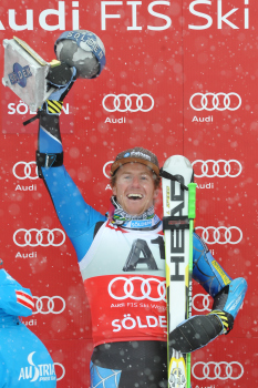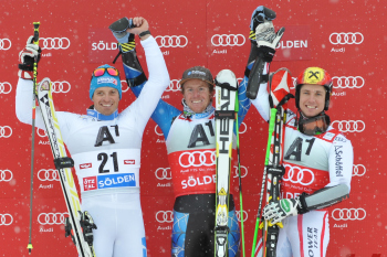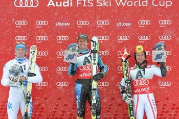 l-r.: Die Sieger von Sölden Manfred MOELGG (ITA), Ted LIGETY (USA), Marcel HIRSCHER (AUT).