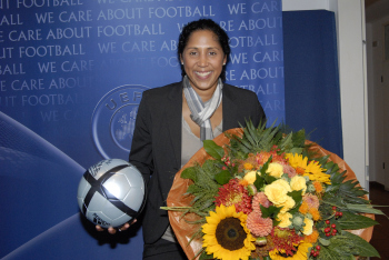 PK Steffi Jones wird zur UEFA-Botschafterin f?r Frauenfussball ernannt - F?rderung des Frauenfussballs in Europa