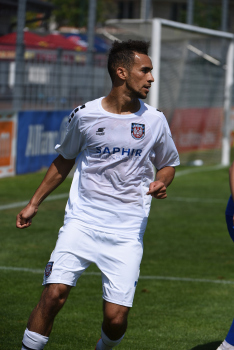 Carmelo Quartuccio (FC Bayern Alzenau ) gegen Sabah, Alban (5, FSV Frankfurt), Denis Mangafic (30, FSV Frankfurt), Azaouagh, Ahmed (7, FSV Frankfurt)