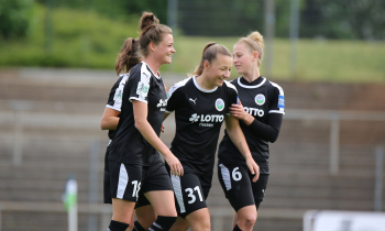 Shekiera Martinez (30, FFC Frankfurt) und Laura Feiersinger (27, FFC Frankfurt), Reuteler, Géraldine (8, FFC Frankfurt), Aschauer, Verena (18, FFC Frankfurt)