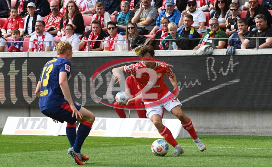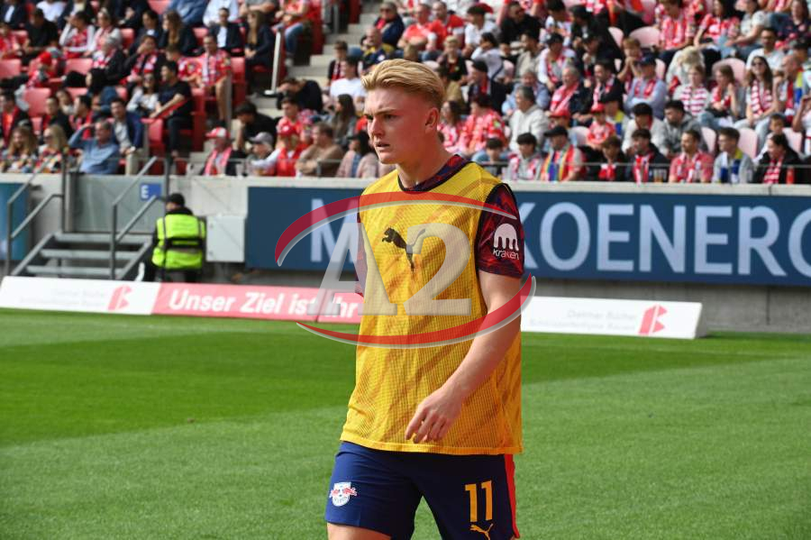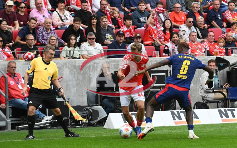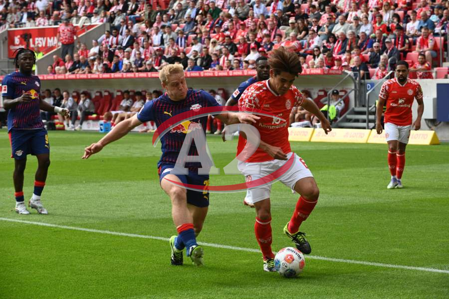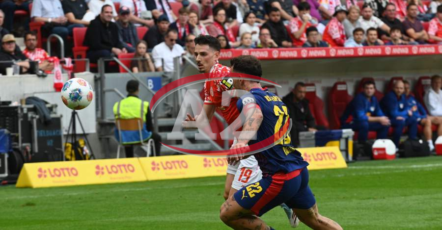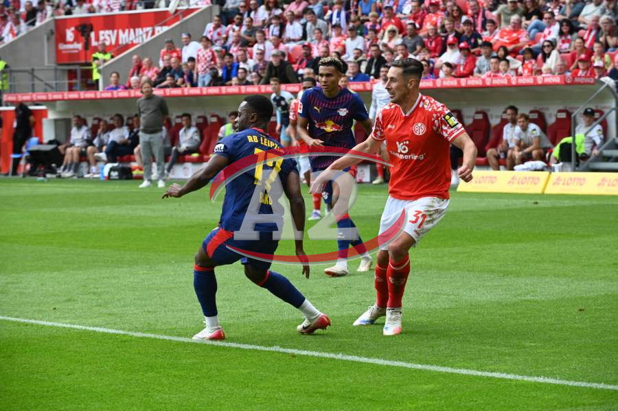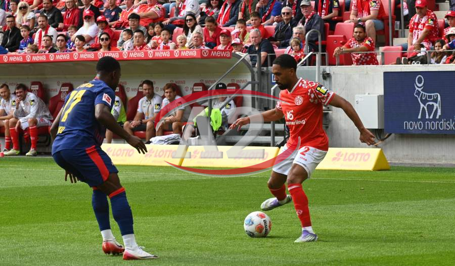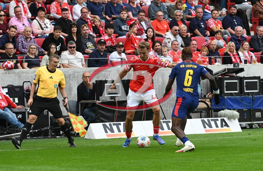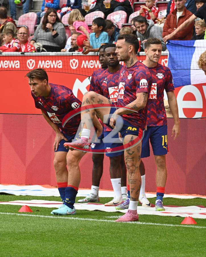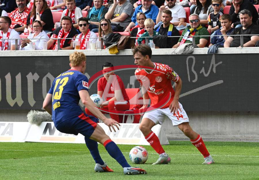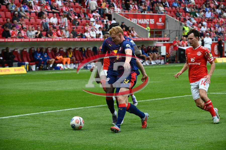 Nicolas Seiwald (RB Leipzig, 13) , dahinter William Böving, Bøving (14, FSV Mainz 05)