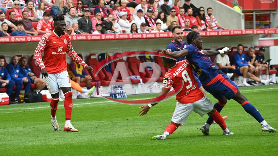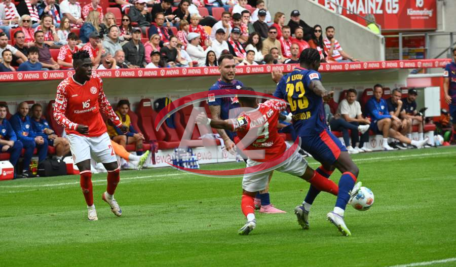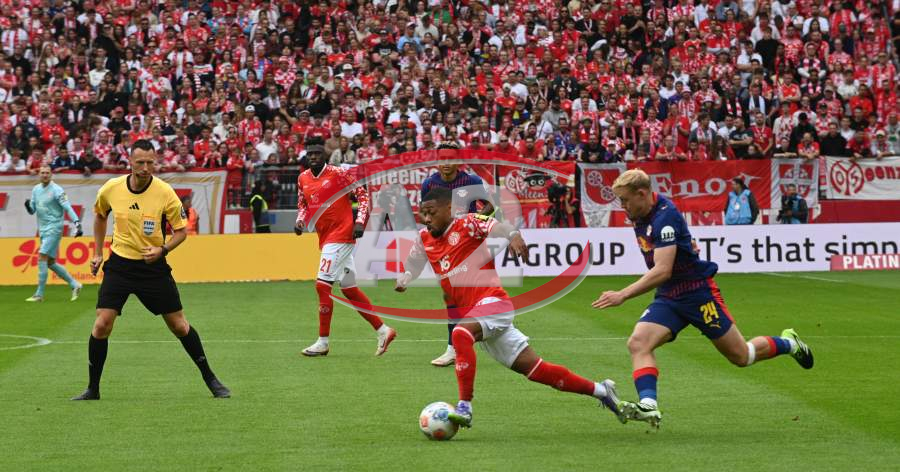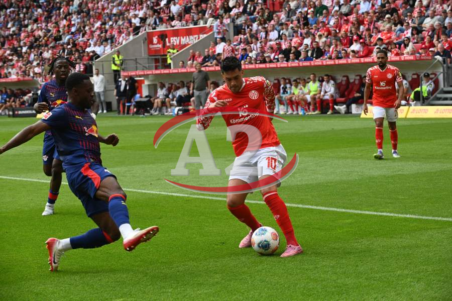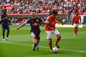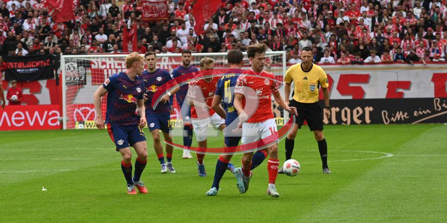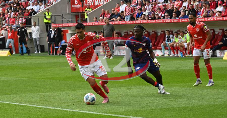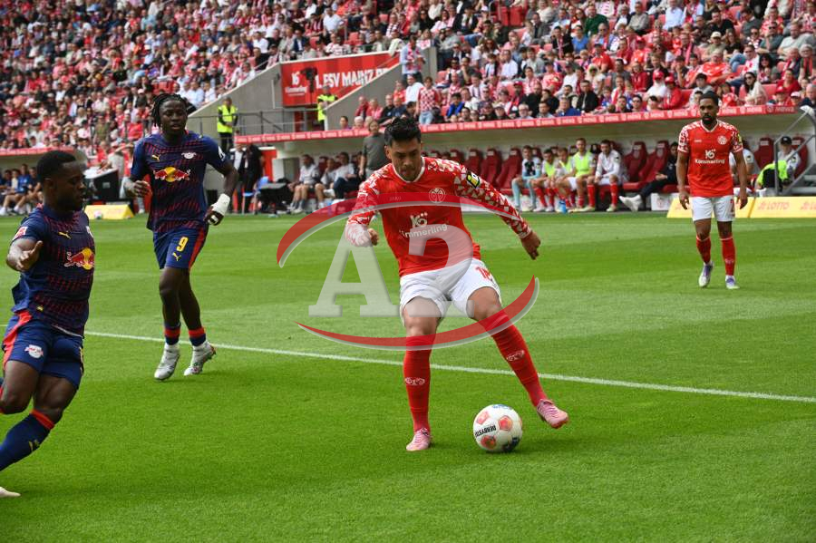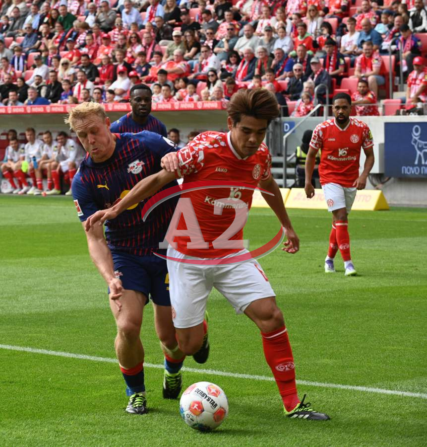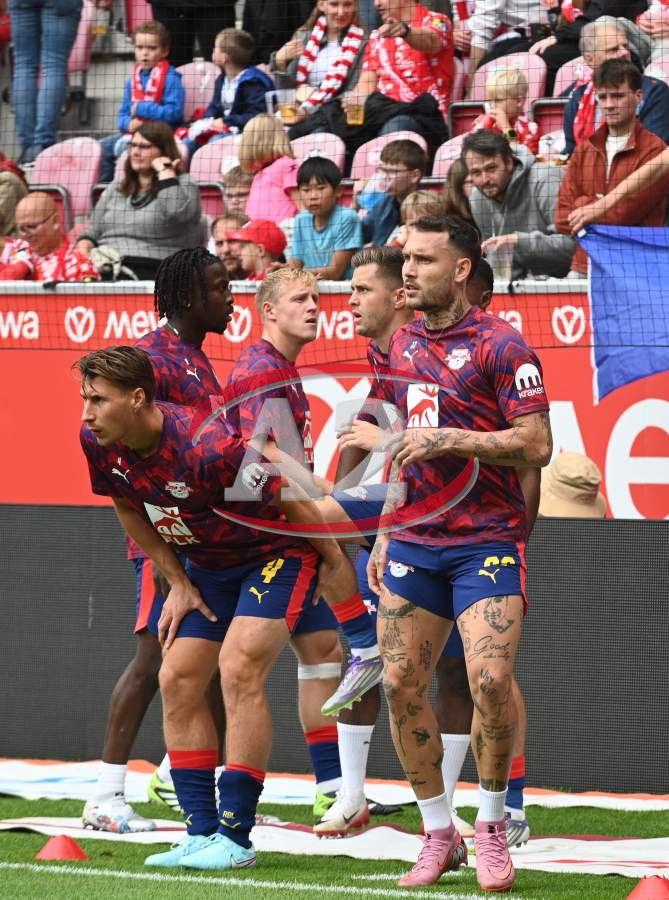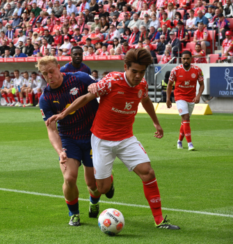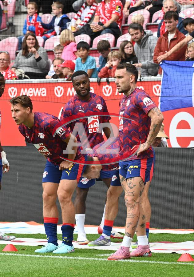 Nicolas Seiwald (RB Leipzig, 13) , dahinter William Böving, Bøving (14, FSV Mainz 05)