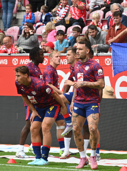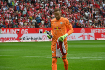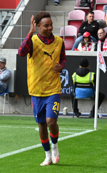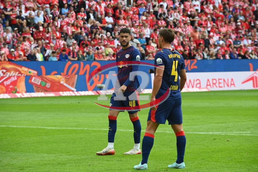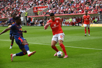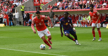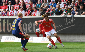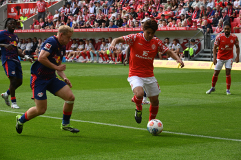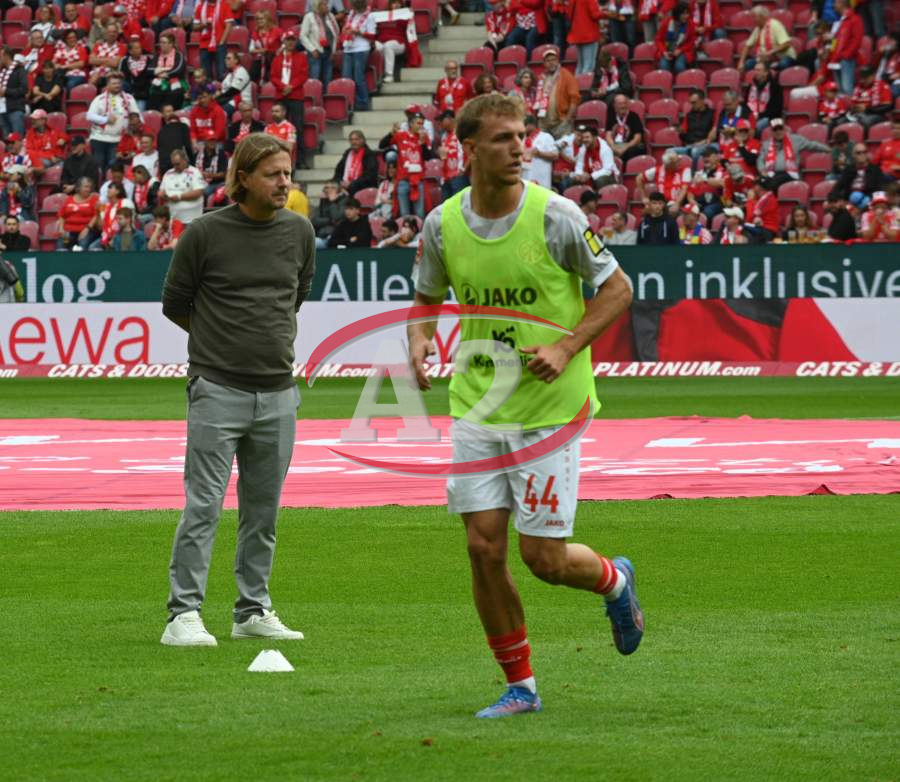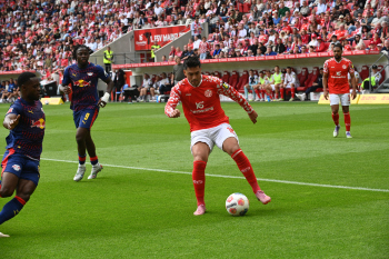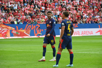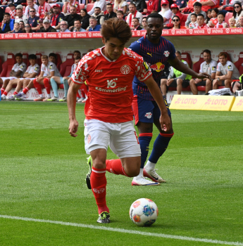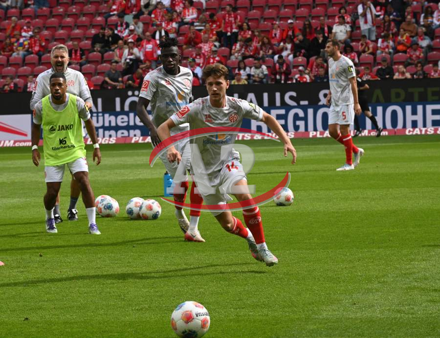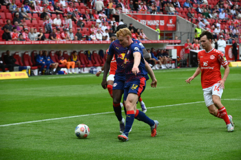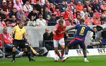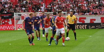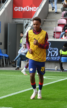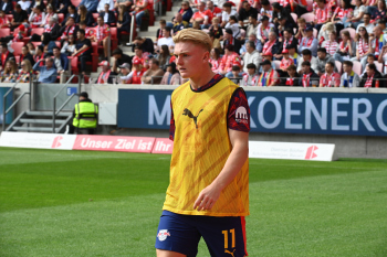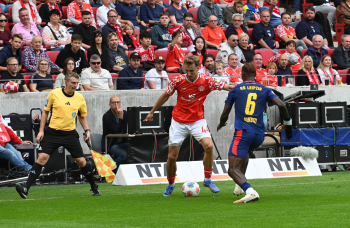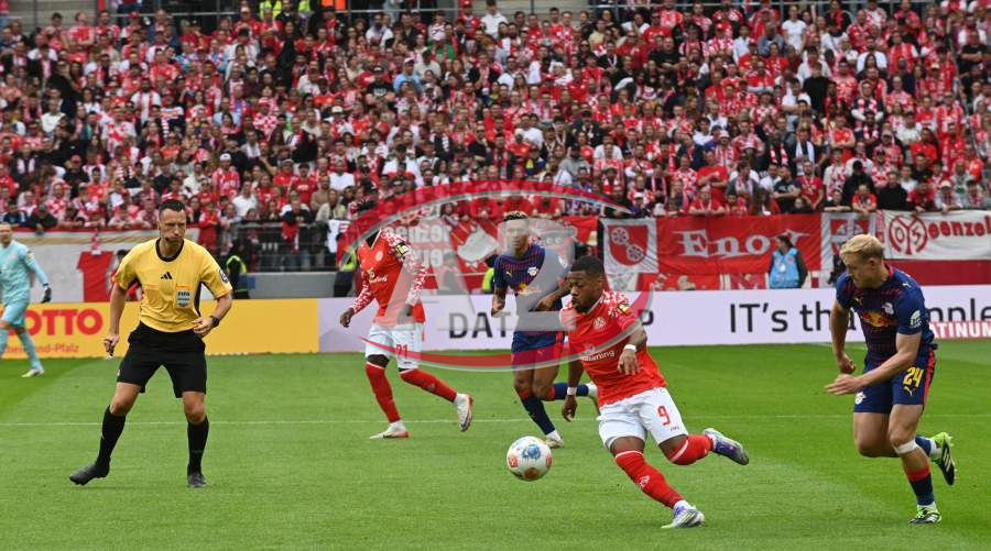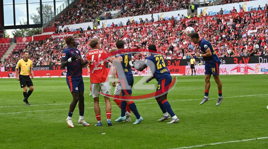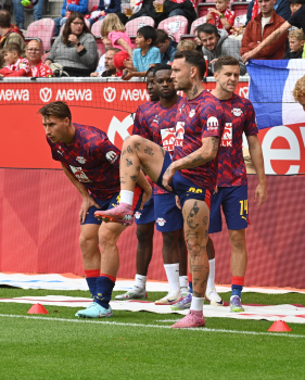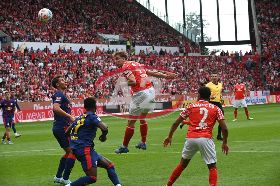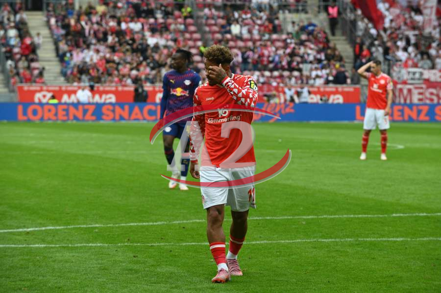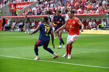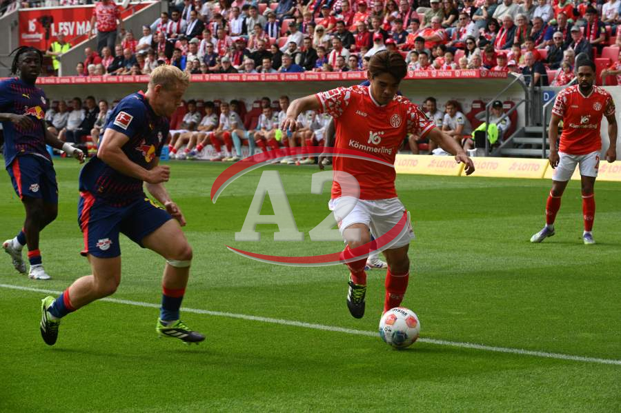 Nicolas Seiwald (RB Leipzig, 13) , dahinter William Böving, Bøving (14, FSV Mainz 05)
