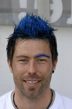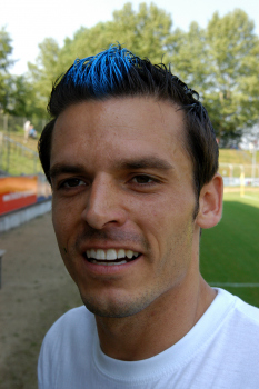 FSV Frankfurt vs SV Viktoria Aschaffenburg, Markus Gaubatz mit blauen Haaren