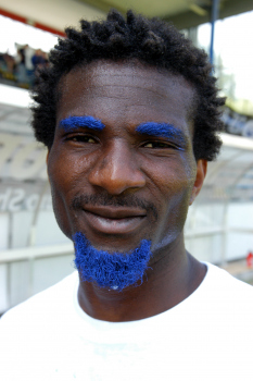Oberliga Saison 2006/2007, FSV Frankfurt vs SV Viktoria Aschaffenburg, Isaac Ojigwe mit blauen Gesichtshaaren