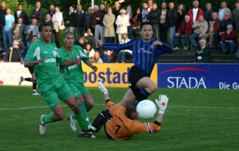 V Bad Vilbel vs Meister FSV Frankfurt , Thomas Brendel setzt sich durch, Torwart Rene Gr?bler ist geschlagen