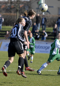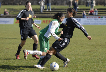 Saison 2006/07, 1. FFC Frankfurt vs VfL Wolfsburg, Steffi Jones vs Sivia Rozeira des Souza, links Birgit Prinz Saison 2006/07, 1. FFC Frankfurt vs VfL Wolfsburg, Steffi Jones vs Sivia Rozeira des Souza, links Birgit Prinz