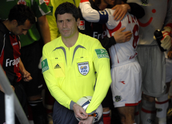 Saison 2006/07 Eintracht Frankfurt vs Hannover 96, Schiedsrichter Dr. Markus Merk kommt aus der Katakombe