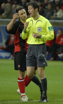 Saison 2006/07 Eintracht Frankfurt vs VfB Stuttgart, Albert Streit diskutiert mit Schiwedsrichter Wolfgang Stark