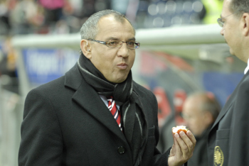 Saison 2006/07 Eintracht Frankfurt vs VfB Stuttgart, Felix Magath st?rkt sich mit einem Apfel Arena