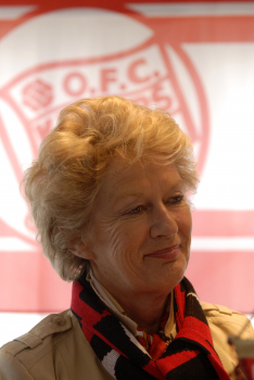 Derby-Schiff, Frankfurts Oberb?rgermeisterin Petra Roth vor dem Wappen der Offenbacher Kickers