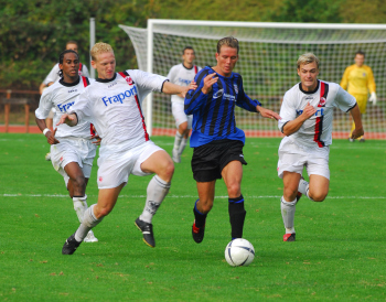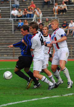 Eintracht U23 vs FSV Frankfurt, Matthias Hagner (FSV) vs Joachim Fricker und Marco Roth (Eintracht)